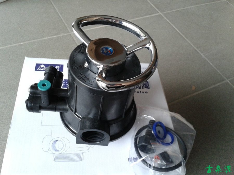通過手動(dòng)扳動(dòng)手柄來操作軟化閥,使其水流方向按照需要變更為運(yùn)行、反洗、吸鹽、補(bǔ)水、正洗。