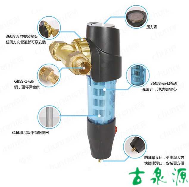 1.食品級PA-12高密度材料6MM加厚航天防爆瓶,抗壓50公斤以上 2.排污手柄結合人體工程學和視覺美學完美設計融合,更美觀實用 3.純潤藍半透明杯體,有效減少光線進入,減少藻類滋生 4.日期刻度記憶功能,方便安全 5.超大杯體,瞬間出水量更大 6.防水錘沖擊設計,更安全 7.標配一寸轉(zhuǎn)6分活接頭 8.5T/小時大流量