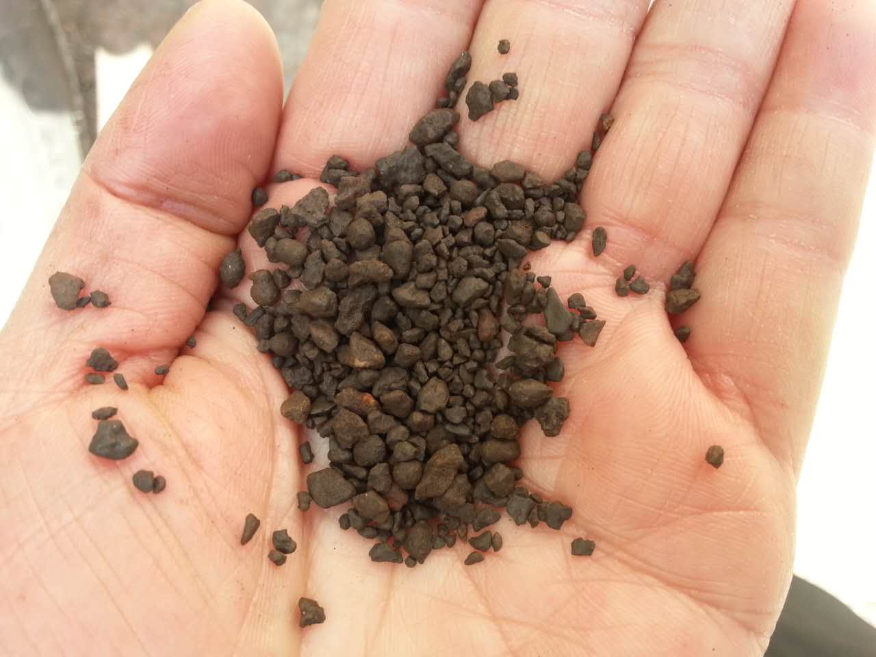 錳砂濾料外觀黑褐色,近圓形,主要成份是二氧化錳,含量在35%-45%之間。